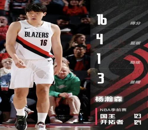 北京时间今晨,NBA季前赛继续进行,杨翰森迎来波特兰开拓者队主场首秀,他在第三节大爆发,单节砍下14分2篮板1盖帽,最终帮助球队以124-123战胜萨克拉门托国王。