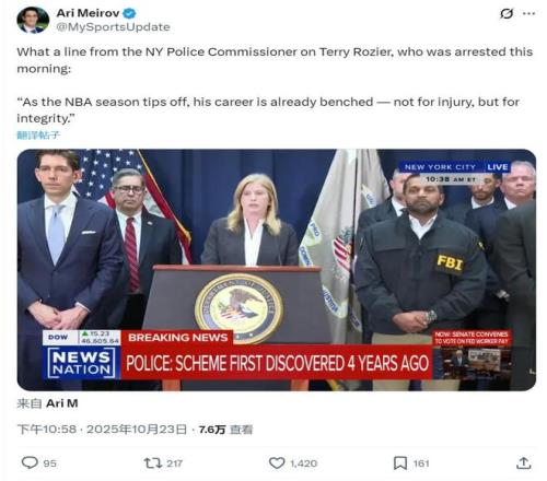 北京时间10月23日,美国联邦调查局(FBI)召开新闻发布会,宣布逮捕了34名与非法赌博案件相关的嫌疑人,其中包括波特兰开拓者队主教练昌西·比卢普斯和迈阿密热火队后卫特里·罗齐尔,FBI局长卡什·帕特尔透露,此次逮捕行动是一项持续数年、覆盖11个州、涉及数千万美元资金的调查结果,这些指控牵涉四个黑手党家族及有组织犯罪网络