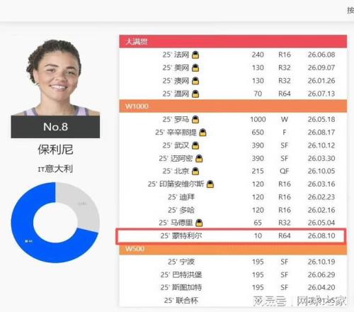 他写道:“Jasmine Paolini没有受到排名积分扣除的处罚——这与Świątek或Sabalenka不同,这位意大利选手今年参加了5站而非6站WTA500赛事。”